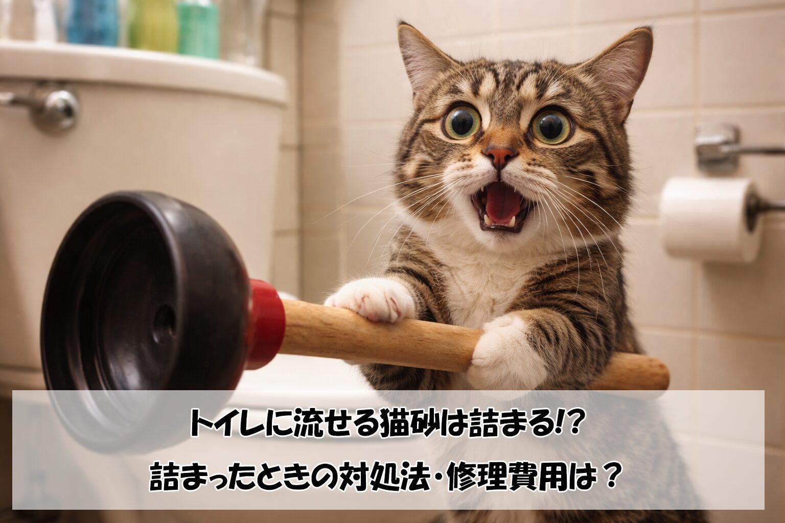 トイレに流せる猫砂は詰まる!?詰まったときの対処法・修理費用は?